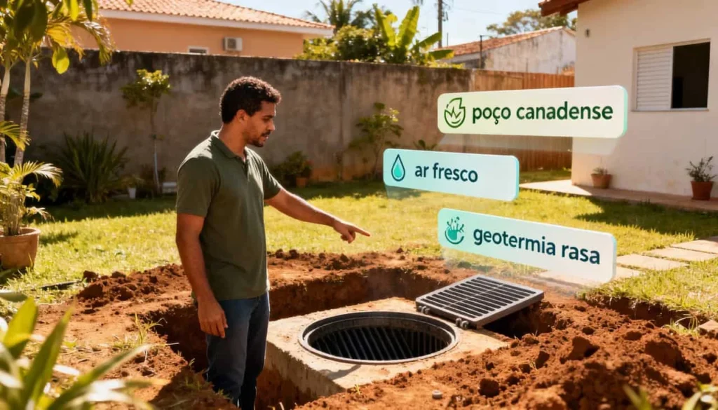 Usar a terra como um “ar‑condicionado” pode soar como conversa de internet, mas tem nome, fundamento físico e aplicação prática. Conhecido como poço canadense ou poço provençal, o sistema leva o ar externo por tubos ou galerias enterradas e aproveita que, a pouca profundidade, a temperatura do solo varia bem menos que a do ar. O resultado: ar que entra nos cômodos já mais fresco, com consumo de energia muito baixo quando comparado a aparelhos mecânicos.